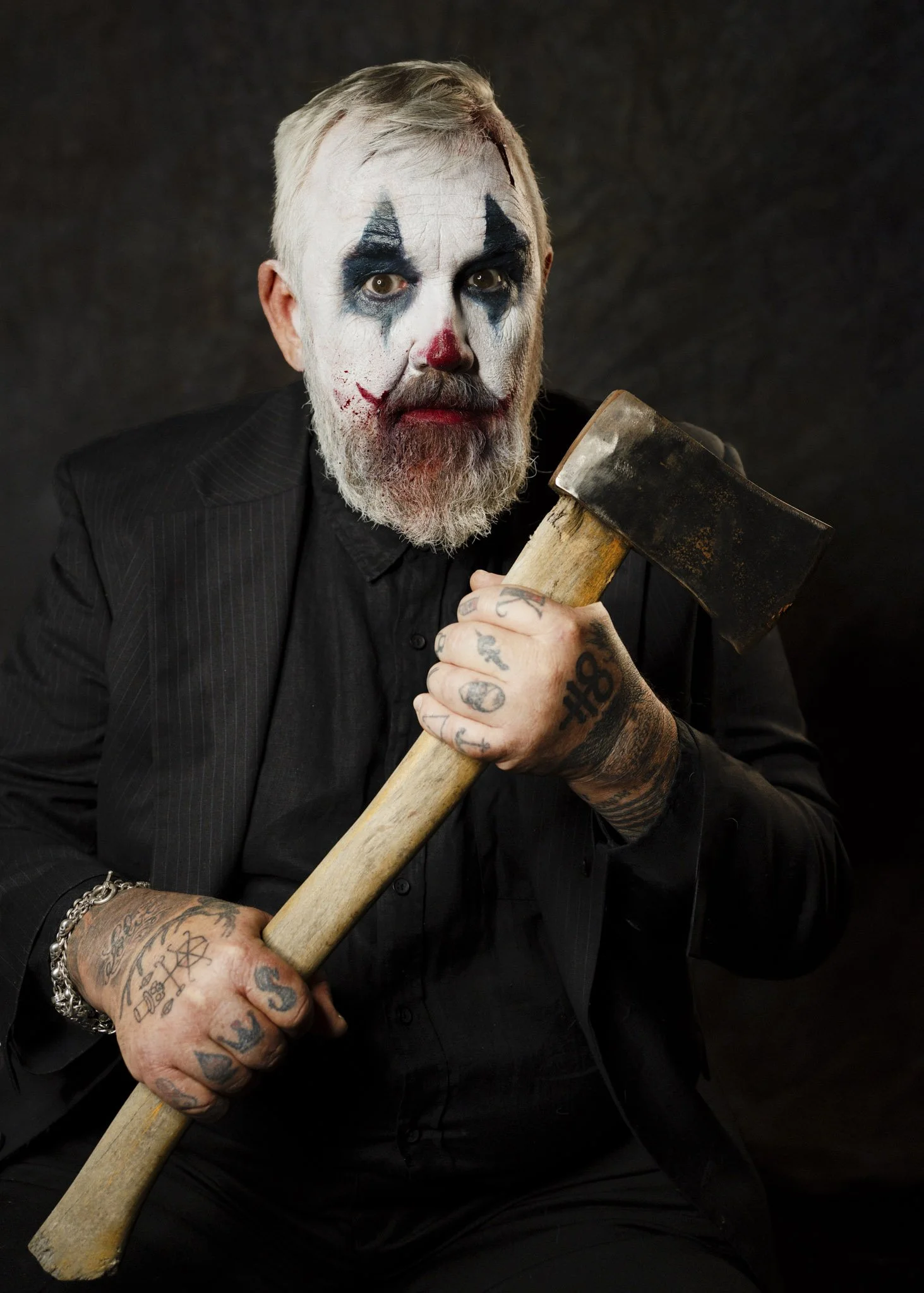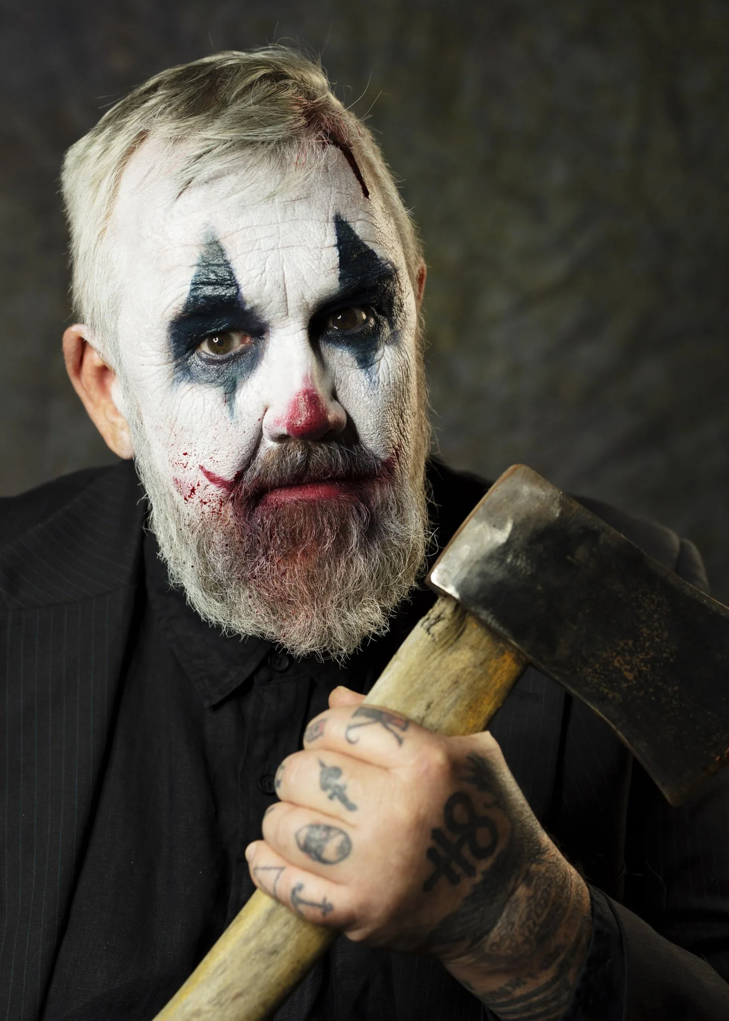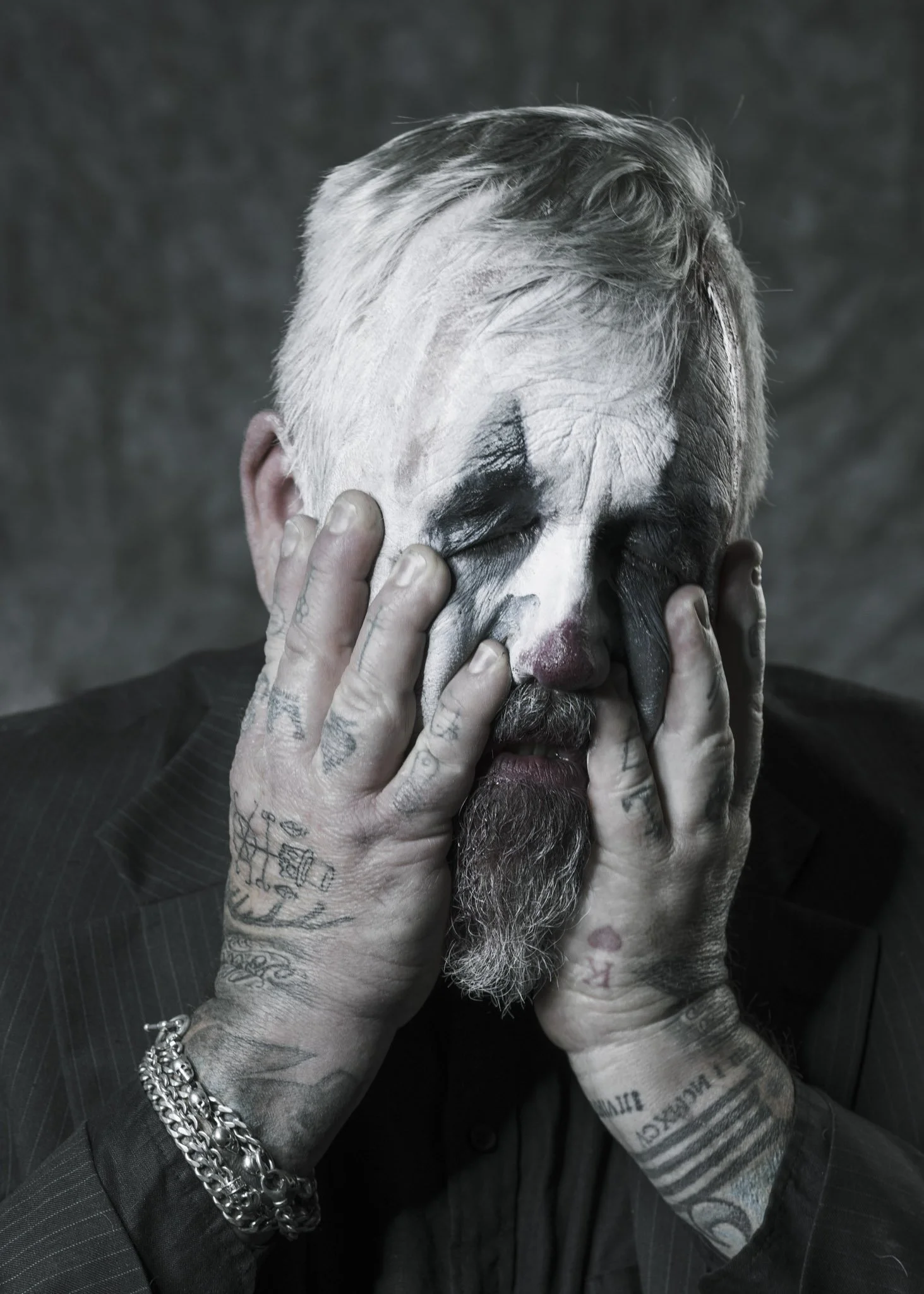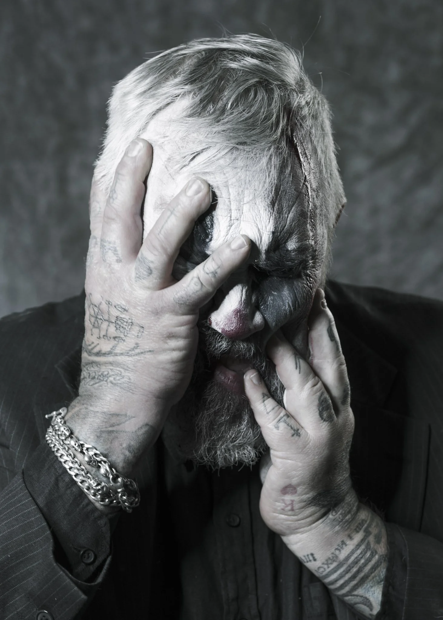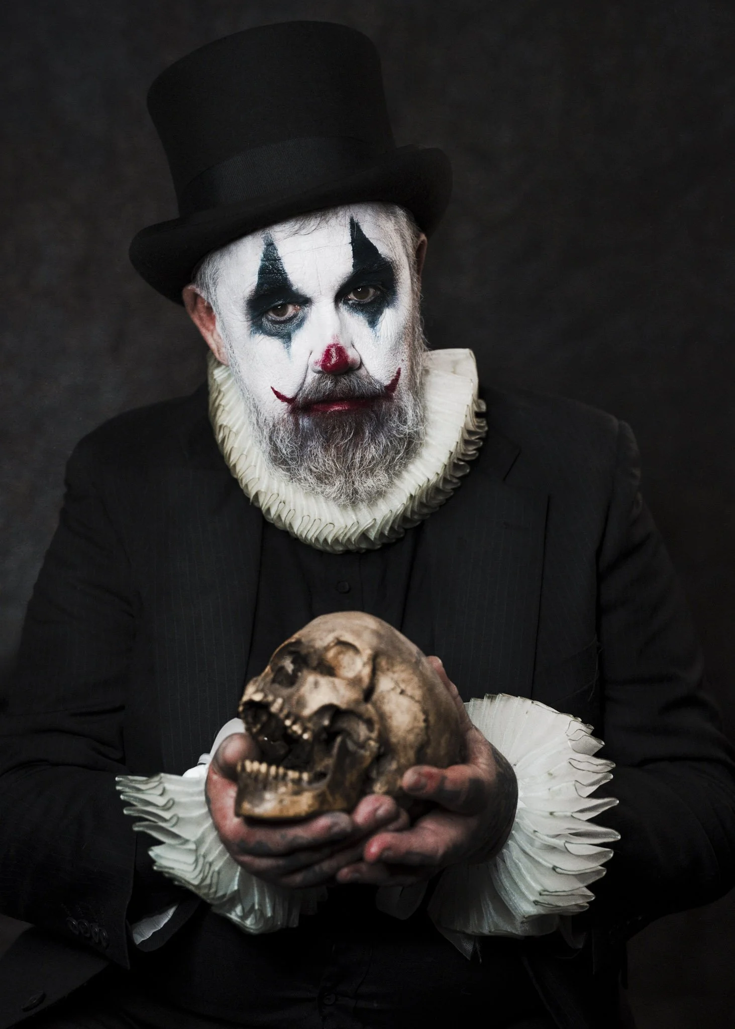 This isn’t a “creepy clown” set. It’s a tragedy in costume, a character study told through micro-shifts in the face and the weight of shadow. The darkness is deliberate. The restraint is deliberate. The mood is the story.