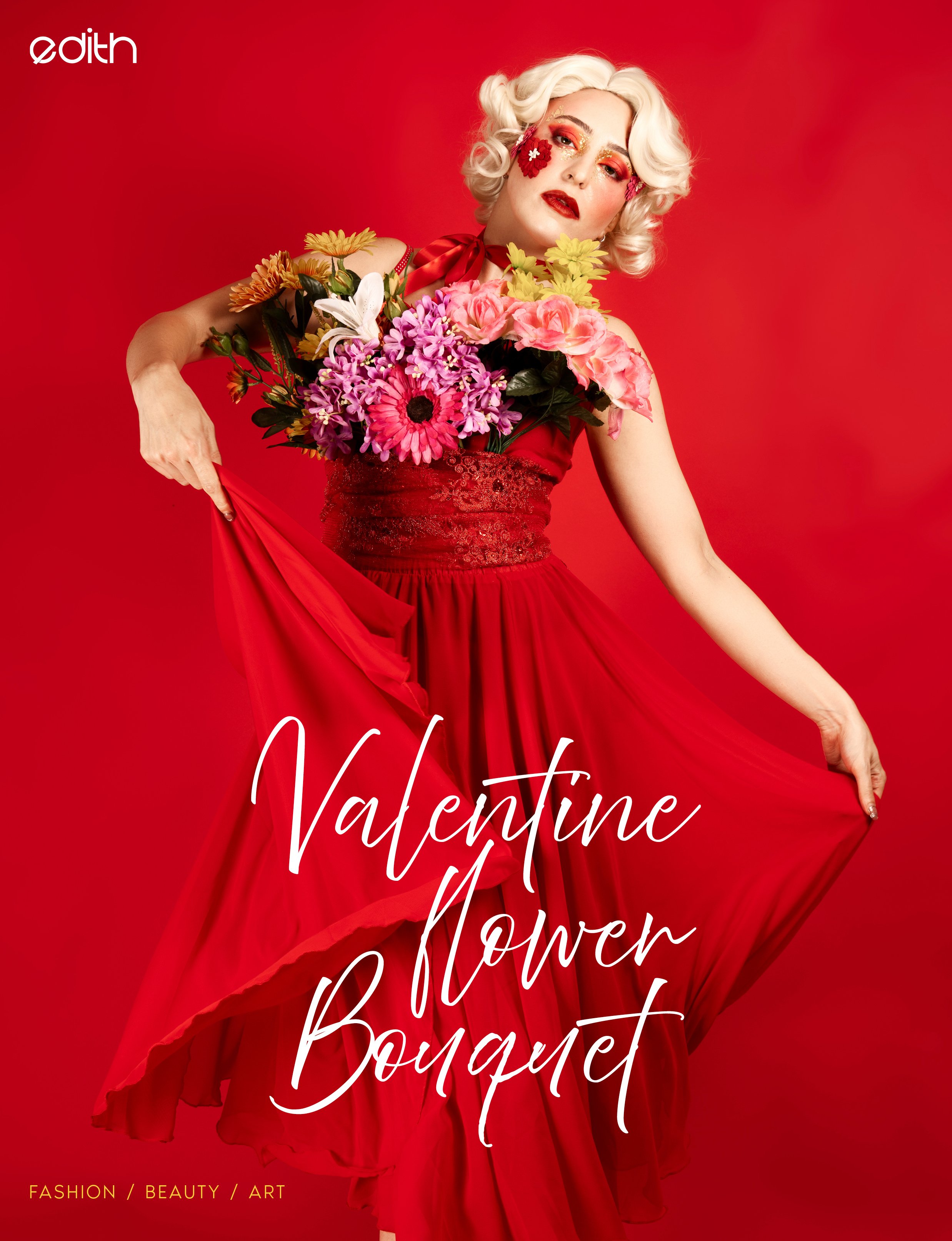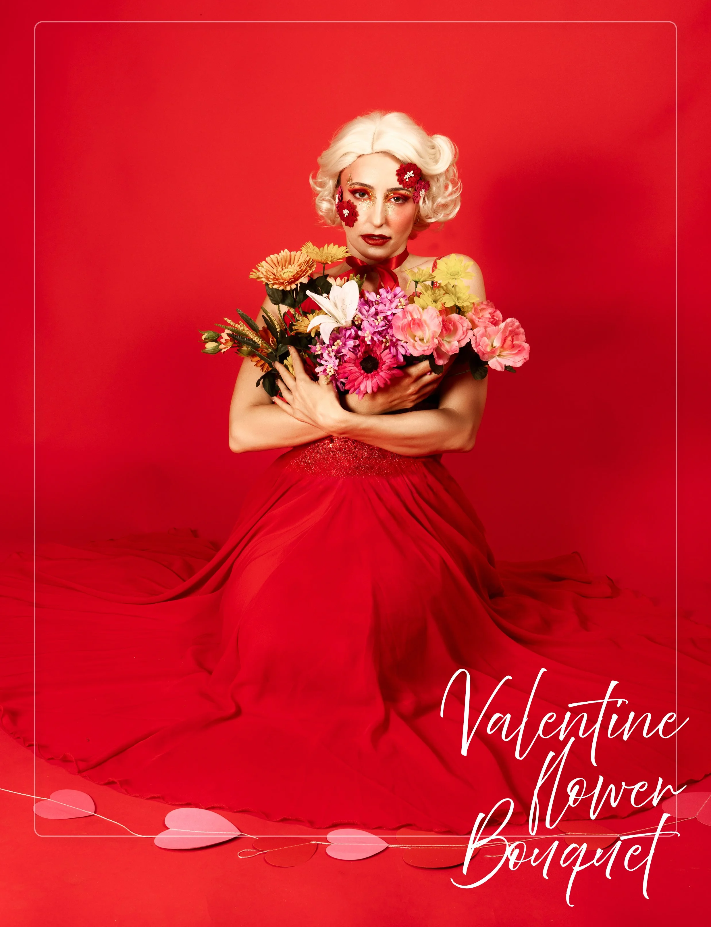 Valentine Flower Bouquet is a creative portrait series built around a simple question, what if the bouquet was the Valentine?