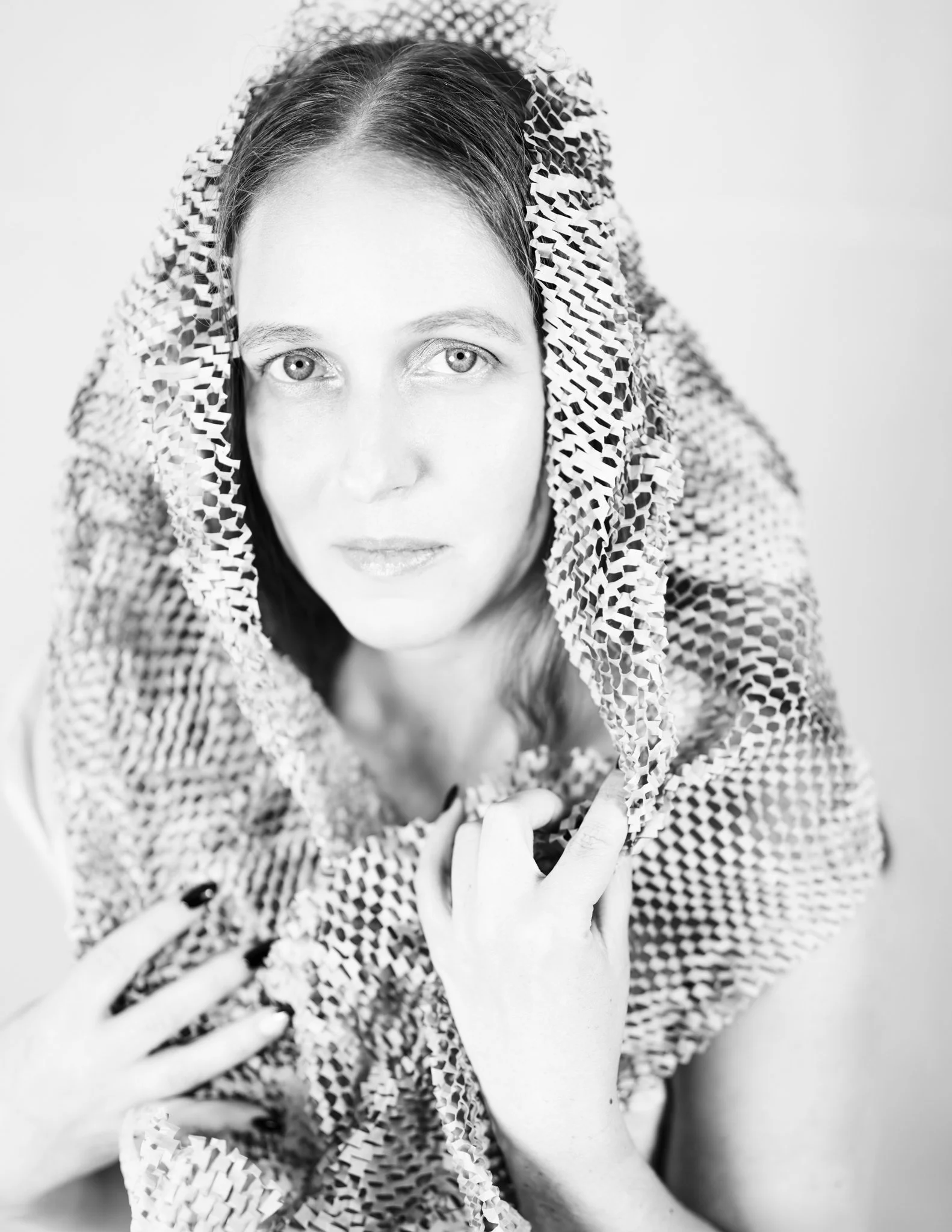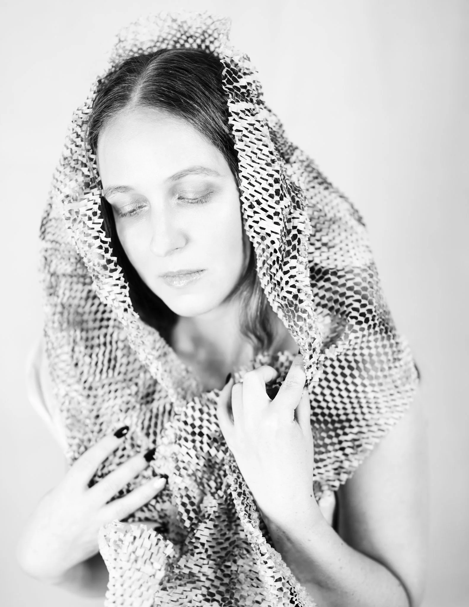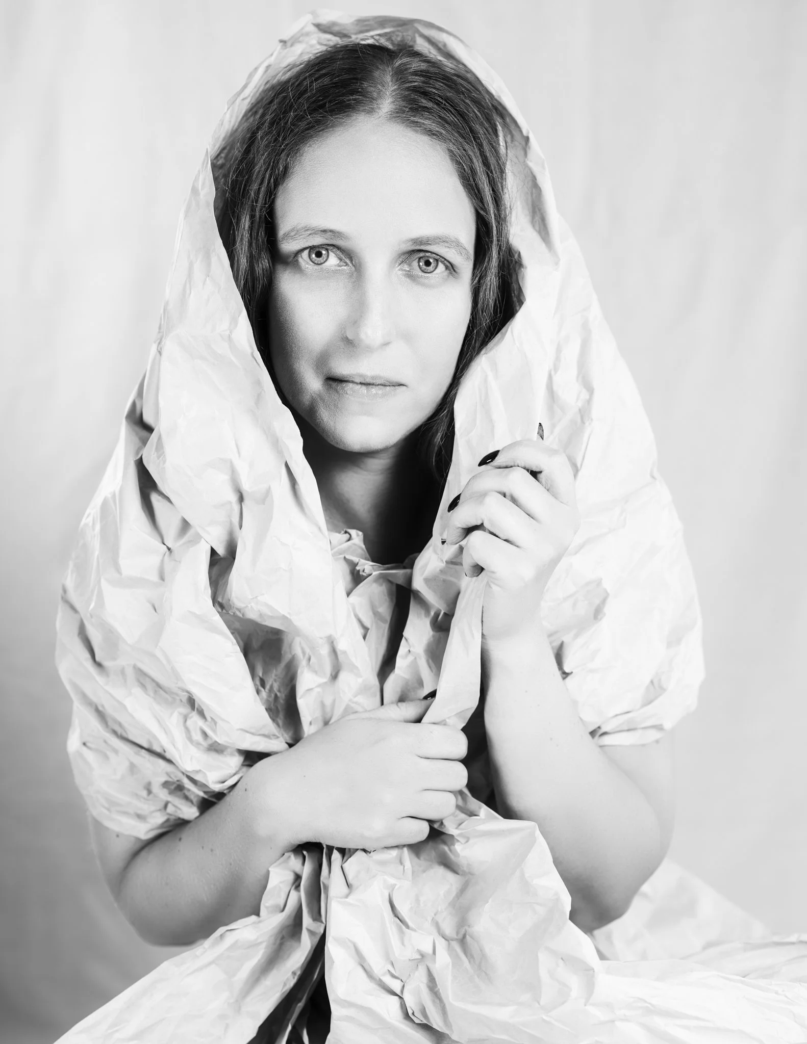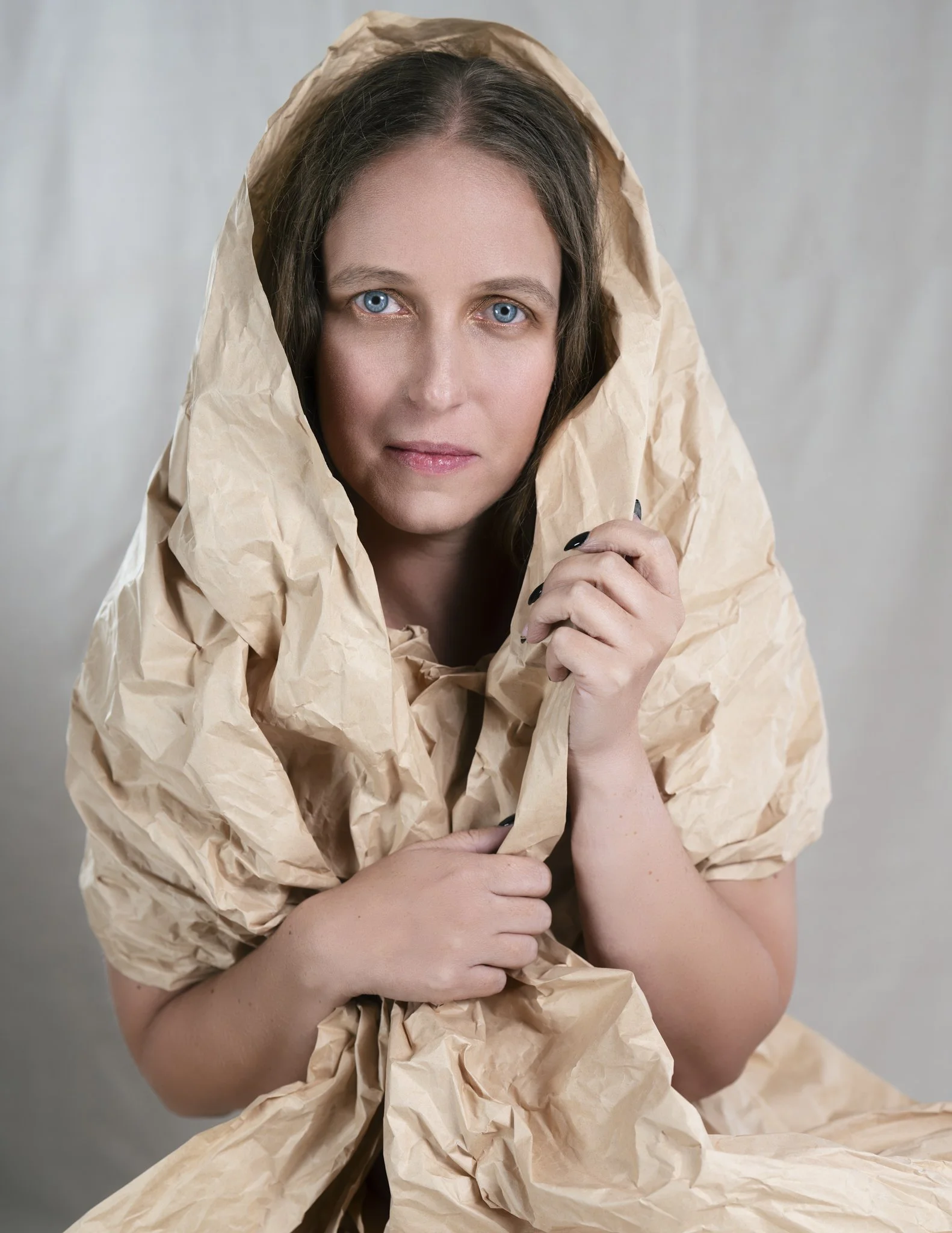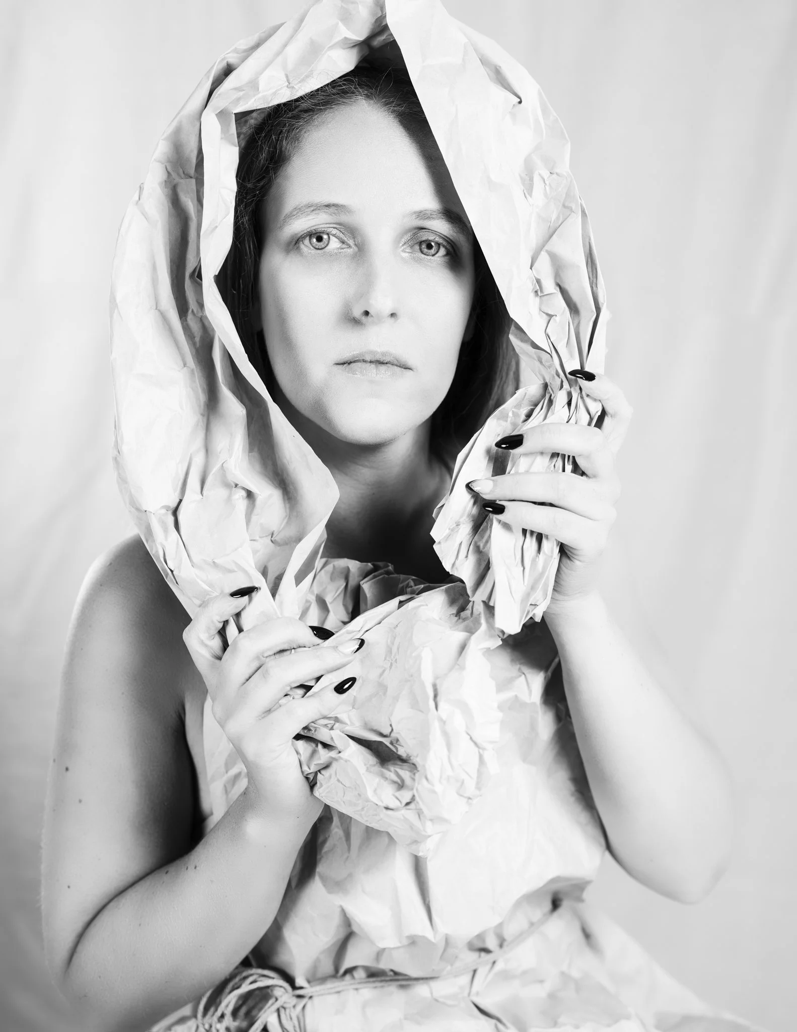 For this session, Lisa came in with a vision and together we worked through how to shape that idea into a finished shoot. Using paper as both styling and texture, we created a range of looks that shifted from soft and sculptural to bold and editorial. Every fold caught the light differently, every movement changed the mood, and every setup gave us something new to play with.