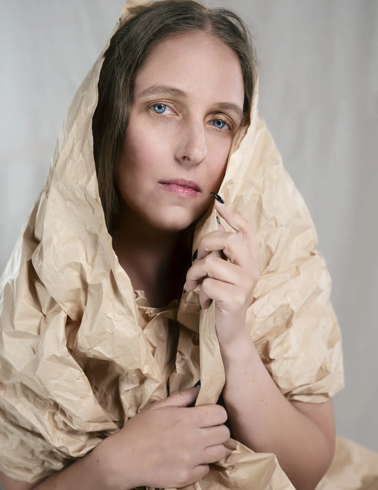 Emily Reinhard was the perfect model for this concept, bringing calm presence, strength, and subtle expression to each frame. Her ability to hold stillness as well as intensity helped bring the paper styling to life in a way that felt elegant rather than gimmicky. The result is a gallery full of portraits that feel both experimental and refined.